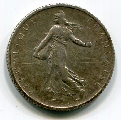 Banconota del 1930 con raffigurata una moneta da un franco del 1919 (1913 sulla mia moneta)