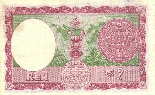 Nepal, 1 rupia 1960. Emessa sulla falsariga delle banconote indiane.