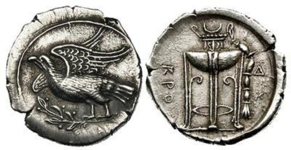 Dalla rete , una piccola serie di alcuni degli interessanti stateri della lunga tipologia a doppio rilievo ,  con l'aquila al diritto ed ,  al rovescio , il tripode in varie forme e con vari simboli nel campo .