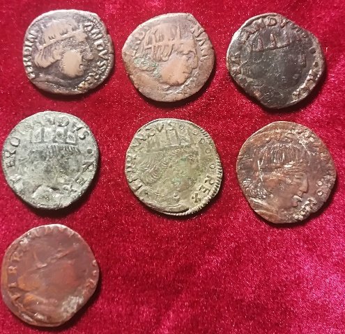 Il quarto è un ribattuto... Ogni tanto, cerco di interessare i lettori di questa discussione. In generale, tra le varie ipotesi, cerco la più semplice e di evitare di dare interpretazioni moderne  a fatti d'epoca. Nel caso di Federico III, in assenza di documenti, credo che furono coniati subito cavalli a suo nome, usando il ritratto di Ferdinando e legenda di Federico. È possibile che di Federico, stando in Puglia, non si conoscesse il ritratto. Poi col tempo il ritratto è diventato quello di Federico, come si può vedere anche sul sestino e sul carlino. Del resto, non conosciamo nemmeno il mastro di zecca che siglava con la L.