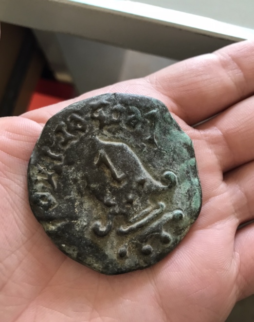 secondo me non si tratta di una moneta per via dello stile e delle dimensioni, magari una medaglia o una placchetta, sarebbe interessante vederla diritta e non rovesciata e capire di che metallo sia, a parte tutto ciò voglio ricordare che i ritrovamenti fortuitisono regolamentati dalla legge dai uno sguardo qui: