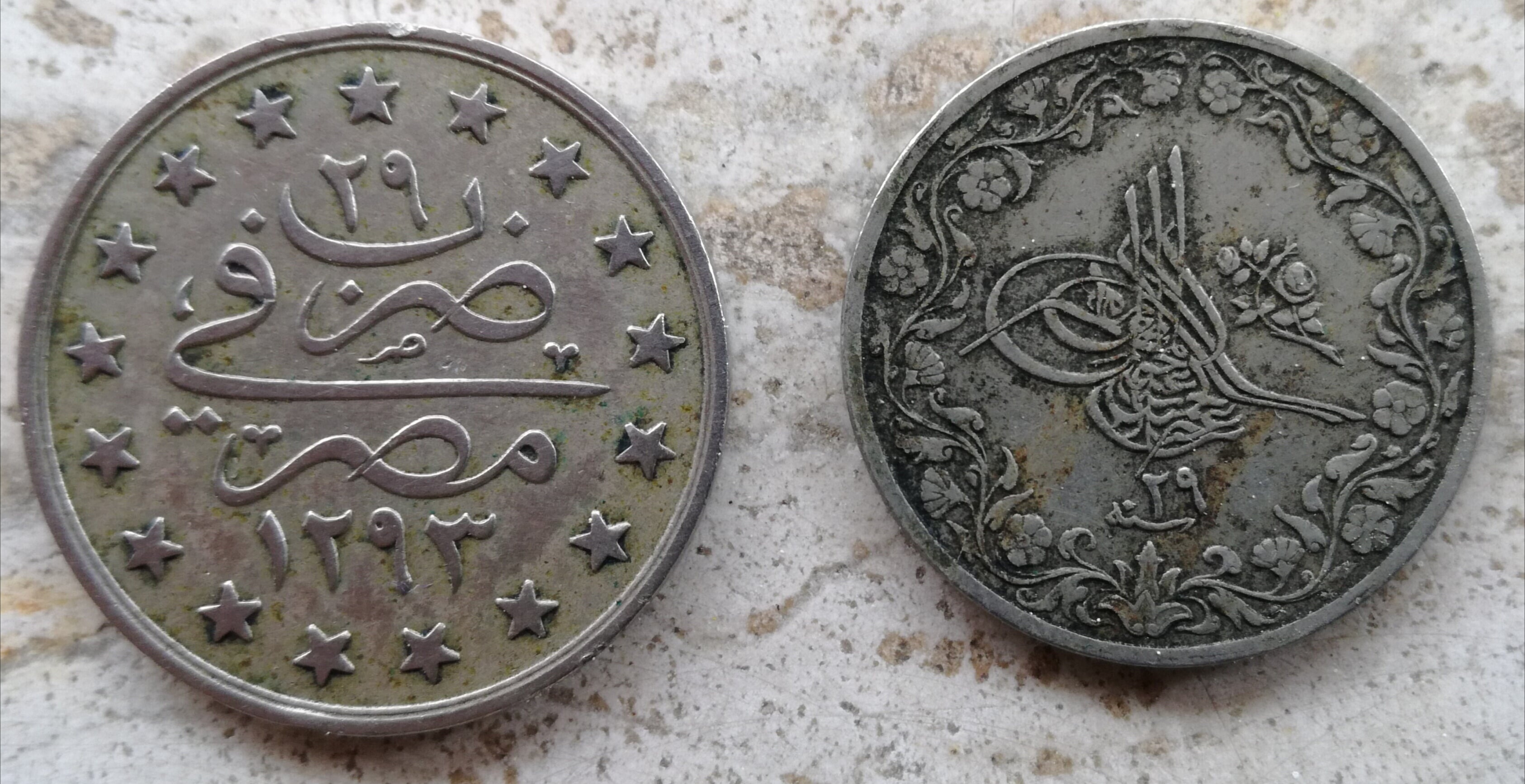 Direi che la moneta a sinistra da 1 qirsh è stata coniata in Egitto; si vede dalla scritta Zuriba fi  / Misr   in arabo sotto l'anno di regnoimage.png.430a4c31c362dc25aa39c26434977291.pngimage.png.cb552a16e169cb58b3f1d5e0b3a56726.png