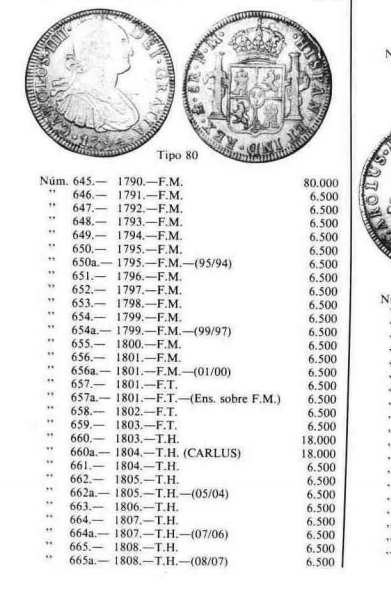 Scusami @rorey36 se ti chiamo ancora in causa, non vorrei sembrare uno stalker ?, però dopo il messaggio in cui mi hai postato la pagina del tuo vecchio Calicò ho notato che in quel catalogo a ogni data della stessa moneta corrisponde una numerazione differente. A quel punto mi è venuto in mente che forse potevo cercare in qualche asta una moneta come la mia e controllare com'era classificata. Ho trovato, proprio in un'asta Aureo e Calicò che scade a breve, che gli 8 reales di Carlo IV del 1796 sono classificati Cal. 690, mentre dal tuo link risulterebbero Cal. 651! C'è stato un aggiornamento del catalogo, oppure mi sfugge qualcosa! ?