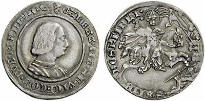 In epoca sforzesca abbiamo delle fantastiche immagini sulle monete di Sant'Ambrogio, una delle più affascinanti e simboliche è nel grosso da 8 soldi di Galeazzo Maria Sforza, dalla staticità si passa al dinamismo, al movimento, Sant'Ambrogio sempre più guerriero, uomo che rappresenta, sa difendere e proteggere.