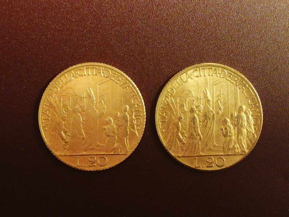 grazie per le risposte,lo sò che è uguale come diritto e rovescio al 100 lire e trovo alquanto improbabile fare un falso in oro con valore di 20 lire usando maggior oro in quanto come peso questa moneta è superiore al 100 lire,provo ancora a cercare tra le medaglie/monete dopodichè scrivo direttamente al servizio numismatico della Santa Sede.