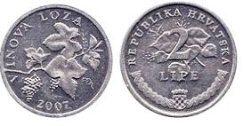 R/ Nella zona centrale è raffigurato un ramo di tiglio stilizzato in fioritura e sulle foglie è scritto il valore della moneta (2). Sotto il numero la scritta "LIPE" (tigli). Lungo il bordo superiore in semicerchio la scritta “REPUBLIKA HRVATSKA” (la Repubblica della Croazia). Lungo il bordo inferiore, al centro, è raffigurato lo stemma della Repubblica della Croazia, su entrambi i lati del quale è posta un’antica decorazione cristiana intrecciata.