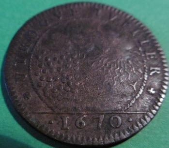 Questa è datata (1670) e recita:  UTROQUE IUPITER. Pesa 5,27 g e misura 24 mm.