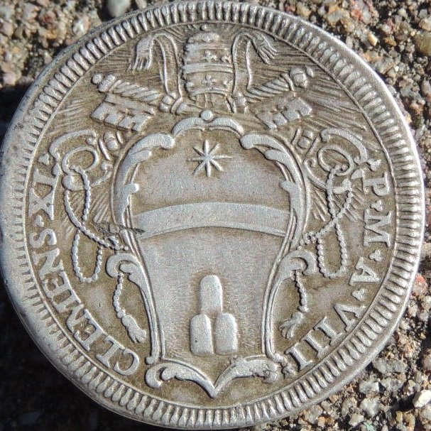 questo bel testone in foto anno VIII, presenta la particolarita' al dritto che e' piu' di una variante di avere la parte superiore raggiante come vedete da foto, non ho trovato nella mia biblografia CNI Munt. etc esemplare simile, che ne dite?