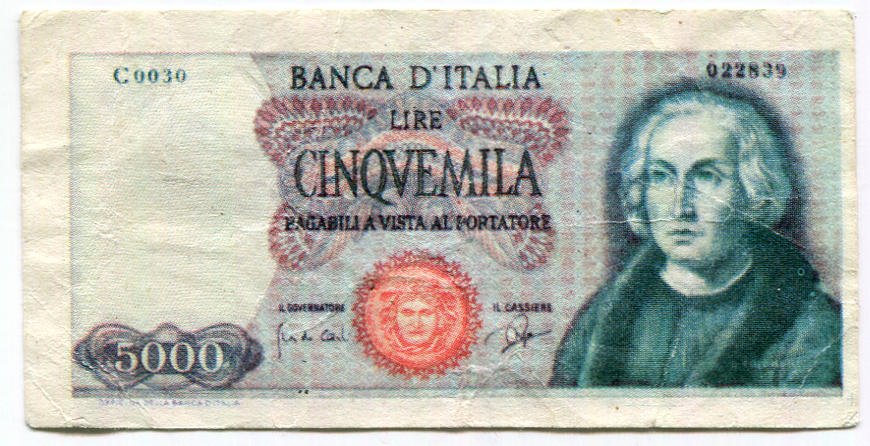 Questa 5.000 lire Colombo i° tipo me la sono ritrovata in mezzo a cartaceo vario che tengo da parte, me ne ero proprio dimenticato... anche se malconcia è stato un piacere averla scoperta. A questo punto, contrariamente a quanto scritto nel post iniziale, ne posseggo una anch'io. :)