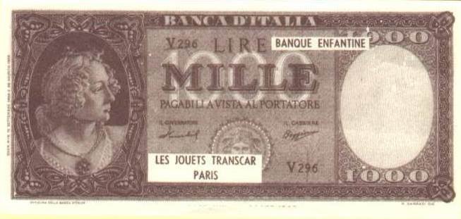 Banconote da gioco della ditta Transcar di Parigi.