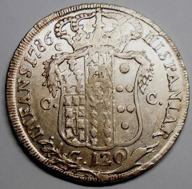 Continuo dicendo che la ricerca va avanti e che la scoperta di nuovi "segni" da un'enorme soddisfazione visto che negli ultimi mesi la mia attenzione è rivolta quasi esclusivamente a queste particolari monete coniate dalla zecca napoletana dal 1759 al 1816, quindi per rimanere in tema posto per tutti gli appassionati del "Re lazzarone" questa piastra del 1805 con quattro punti, due per lato, a fianco della corona al rovescio...