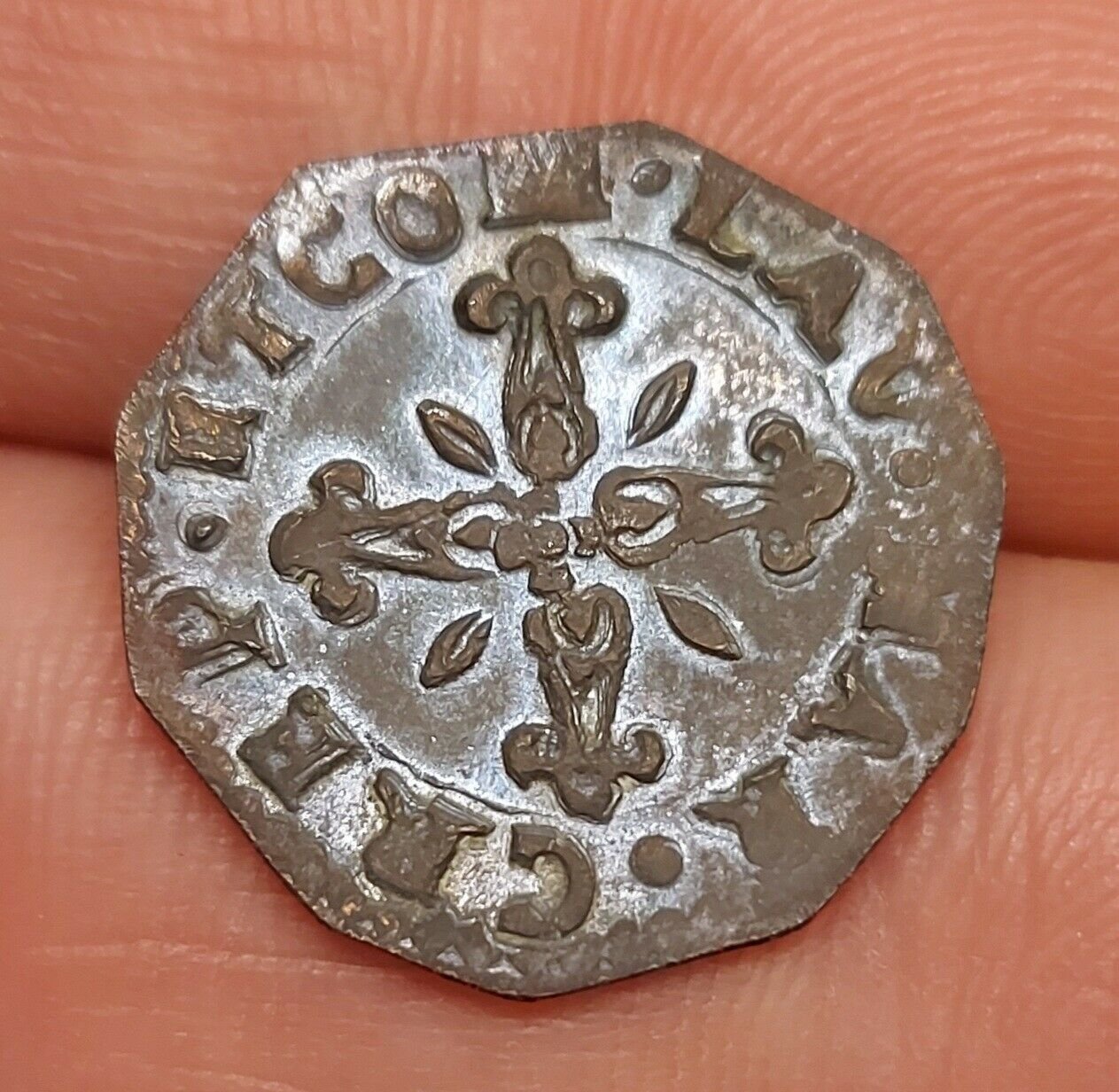 Mi inserisco in questa discussione per aggiungere una monetina che lavorando di squadra su FB siamo riusciti a catalogare (con un forte lavoro per tirare fuori i particolari, visto come si presentava la moneta all'inizio ;) )