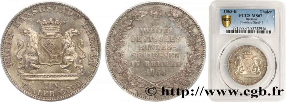 GERMANY - FREE HANSEATIC CITY OF BREMEN Thaler 2nd festival allemand de tir 1865 Brême