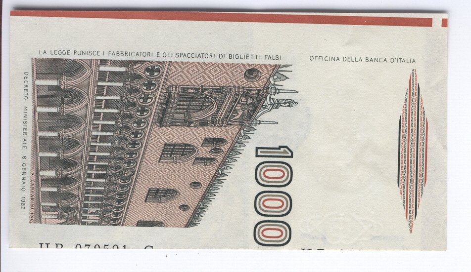 Mille lire M.Polo errore di stampa/taglio