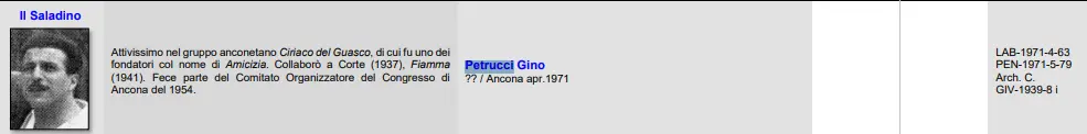 "GENERONE", CLASSE DI AGIATI