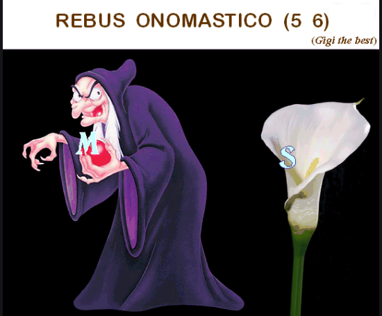 Rebus onomastico ispirato alla favola di Biancaneve.