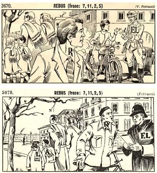 Il rebus 3670 è firmato V. Petrucci, ma non sono riuscito a trovare un rapporto con Petrucci del rebus sottostante.