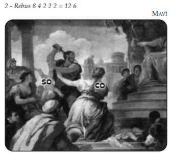 Rebus ispirato al quadro di Luca Giordano “Il Giudizio di Salomone” con il nome di un composto chimico come frase risolutiva.