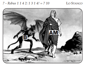 Ho trovato il rebus con la cesura sul grafema AM: è un rebus sul tema del Nuovo Testamento “le tentazioni di Gesù”.