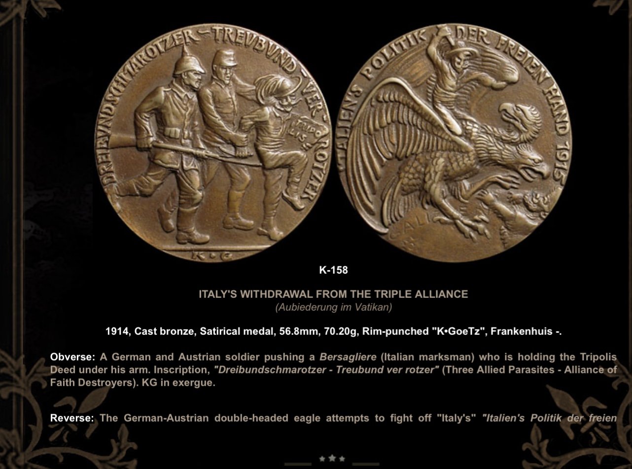 complimenti per il sito. Volevo mostrarti un paio di medaglie di Goetz in mio possesso. Sulla seconda avrei numerose domande non avendo trovato riferimenti precisi, in particolare materiale peso e diametro. Ringrazio anticipatamente per la tua disponibilità
