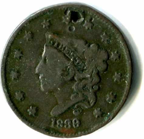 Stati Uniti 1839 - un cent Coronet (100% rame - gr. 11 - 29,00 mm)