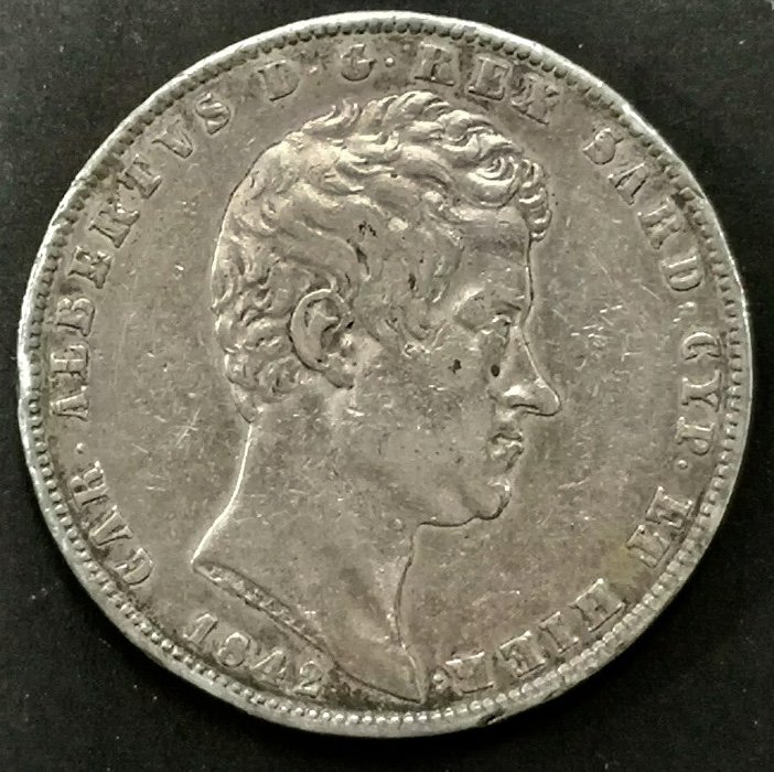 Cercando su internet non ho trovato molti esempi in vendita di 5 lire Carlo Albeto 1842 Torino.