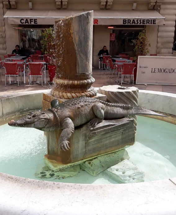 Non è il mio campo di interesse, ma mi incuriosisce la raffigurazione del coccodrillo che questa primavera ho visto rappresentato in una fontana, molto bella, a Nimes.