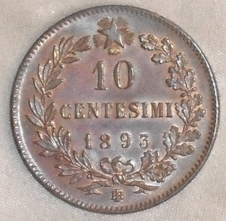 10 Centesimi  1893 zecca Birmingham, anche qui si nota il 9 leggermente spostato in alto