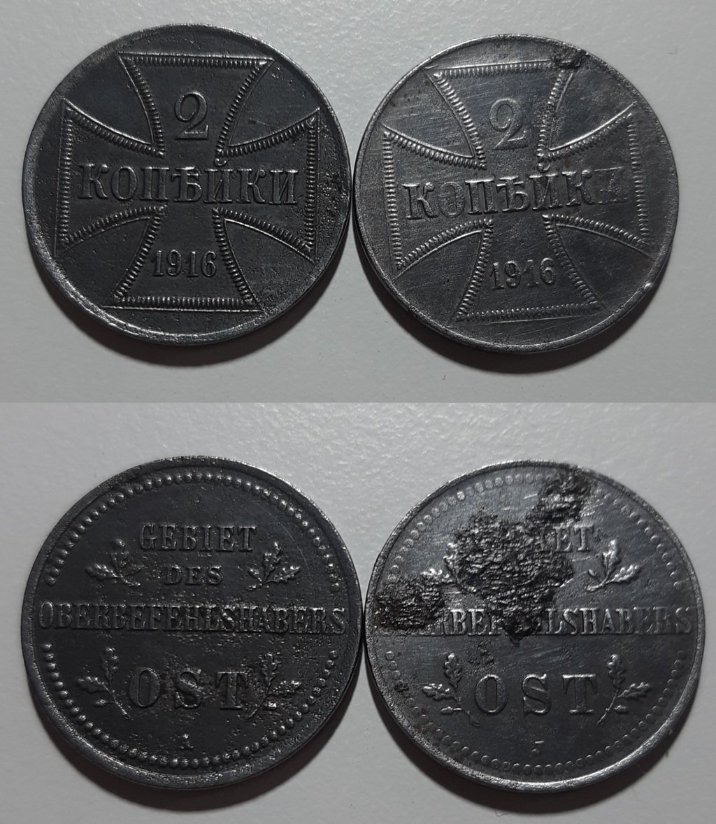 Aggiungo i miei 2 Kopeks 1916 A (Berlino) e 1916 J (Amburgo). Monete usate durante la prima guerra mondiale nei paesi dell'est europa occupati dalla Germania. In condizioni ottime sono difficili da reperire in quanto il materiale utilizzato è il ferro.