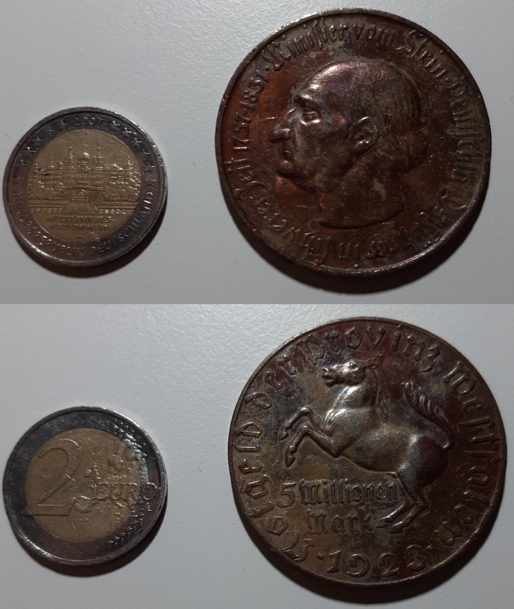 5 Millionen Mark - Notgeld Westfalen 1923. Niente di che, vista l'ossidazione, ma una moneta molto particolare.