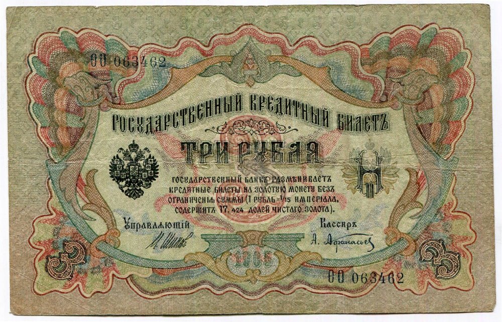 Tannu Tuva - 3 Lan    (soprastampa su di una banconota da 3 rubli dell'impero russo del 1905)