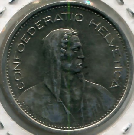3- La moneta che presenta un ritratto di Gugliemo Tell molto "evanescente" come il 5 Franchi 1923