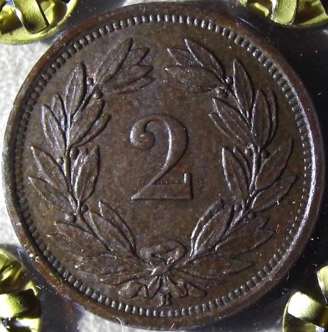 Per quanto riguarda la prima è nella raccolta di famiglia dagli anni '60, fu data a mio padre da una persona autorevole che la considerava Rara ma non Rarissima essendo ( secondo lui ) il primo lotto coniato dopo il cambiamento di peso e diametro del 5 Franchi. Naturalmente molti anni fa la portai a periziare ad un certo numero di Esperti, ma sorsero dei problemi, in quanto tale monetazione è poco collezionata, veri Esperti in Italia sono pochi: qualcuno la considerava artefatta ( B abraso ) -ma guardata al microscopio non si nota niente-, altri mi dissero che ne avevano già viste altre e così via. Il dubbio resta e mi ricorda quello del 10 Cent. 1866 senza segno di zecca che molti hanno ( anche il sottoscritto ), qualcuno è sicuramente originale, ma nessuno è disposto a fare una perizia.