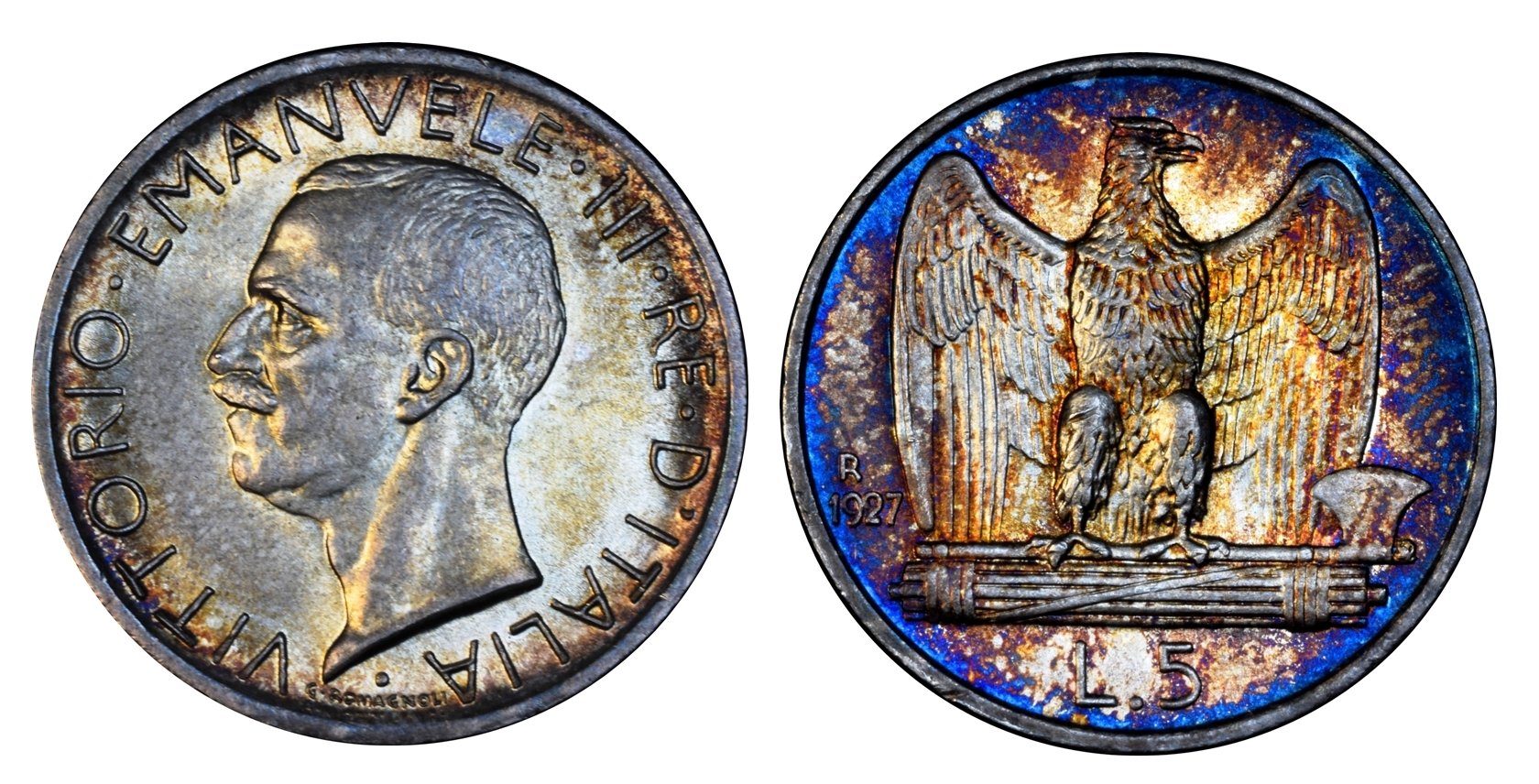 Non colleziono monete Italiane, soprattutto del Regno d'Italia, ma quando ho visto questo 5 Lire non ho potuto fare a meno di acquistarlo, da un vecchio (più di me) collezionista. Secondo me è un FDC, ma chiedo ugualmente pareri agli amici del Forum. Ovviamente l'ho preso per la patina.