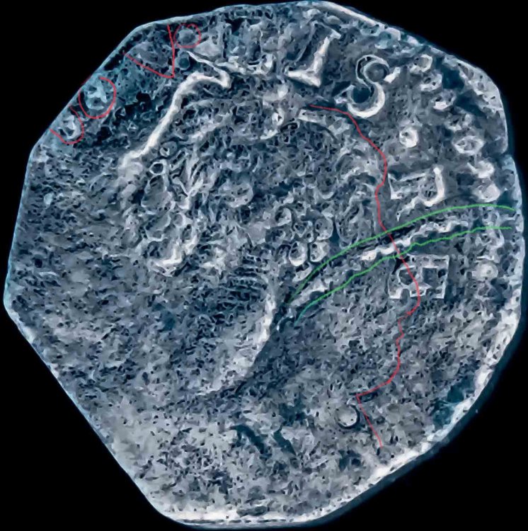 Ho scorso molto velocemente la discussione, forse non è stato ancora indicato a parole quanto l'utente doppiopunto ha evidenziato nella foto a colori invertiti: una frattura di conio al rovescio della moneta si estende dalla legenda al centro del conio: ne consegue in modo matematico come la legenda sia parte di quel conio e non il vestigio di un sottotipo.
