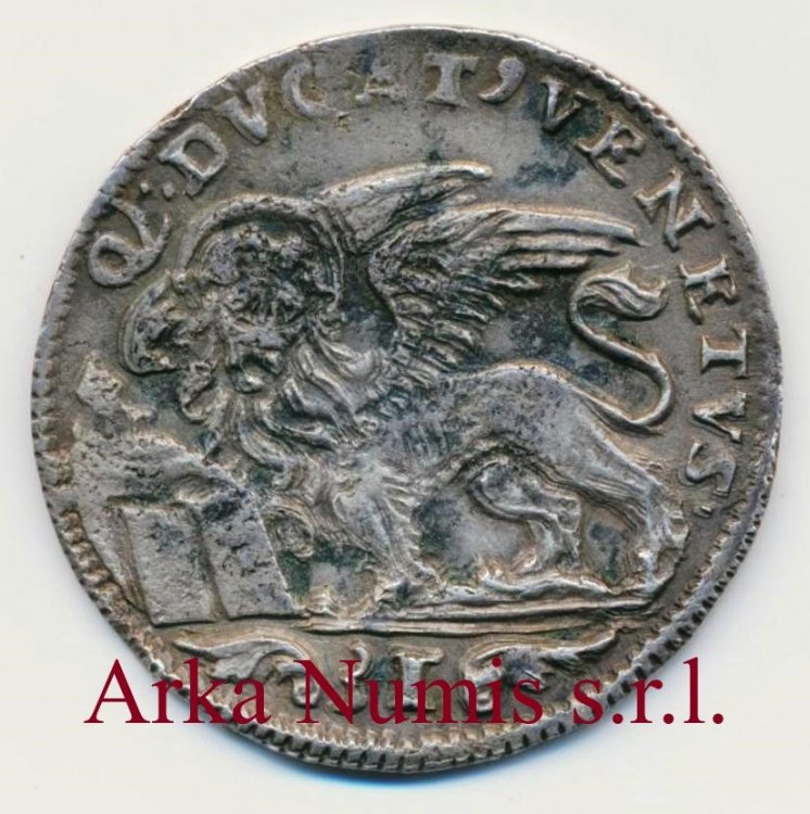 Verissimo, Artur. E' una rappresentazione davvero insolita sulle monete, più comune nelle opere pittoriche, soprattutto quelle "ufficiali". Nell'ordine alcuni esempi: Paolo Veneziano (XIV secolo), Bellini (XV), Tintoretto (XVI) e uno di cui non ricordo l'autore ma sicuramente seicentesco, nella sala della Bussola in Palazzo Ducale.