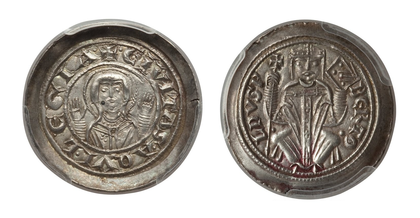 Per concludere le monete trivenete della mia collezione (purtroppo al momento ne ho solo due) vorrei mostrarvi un denaro di Aquileia con la Vergine.