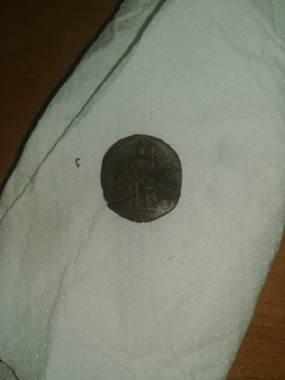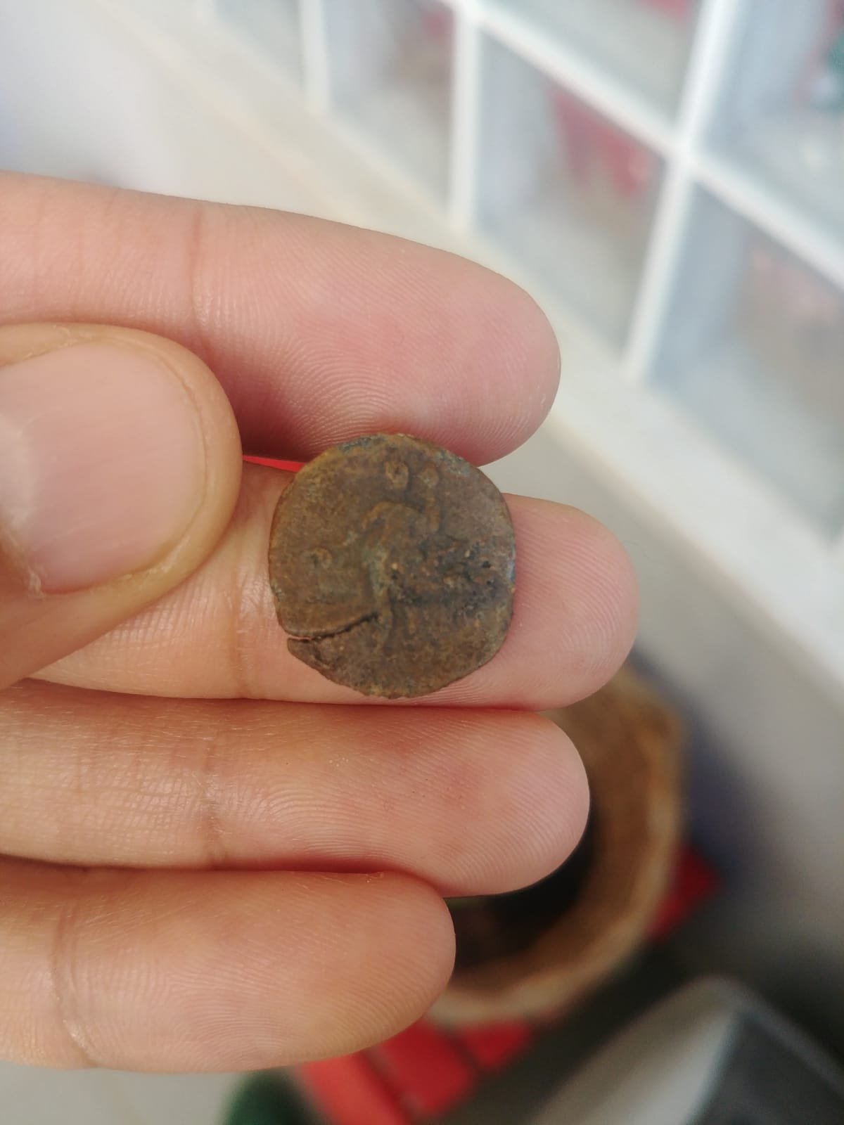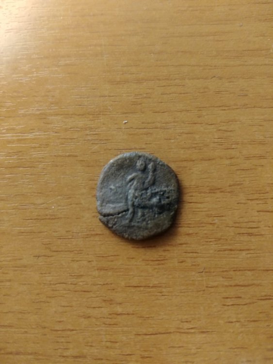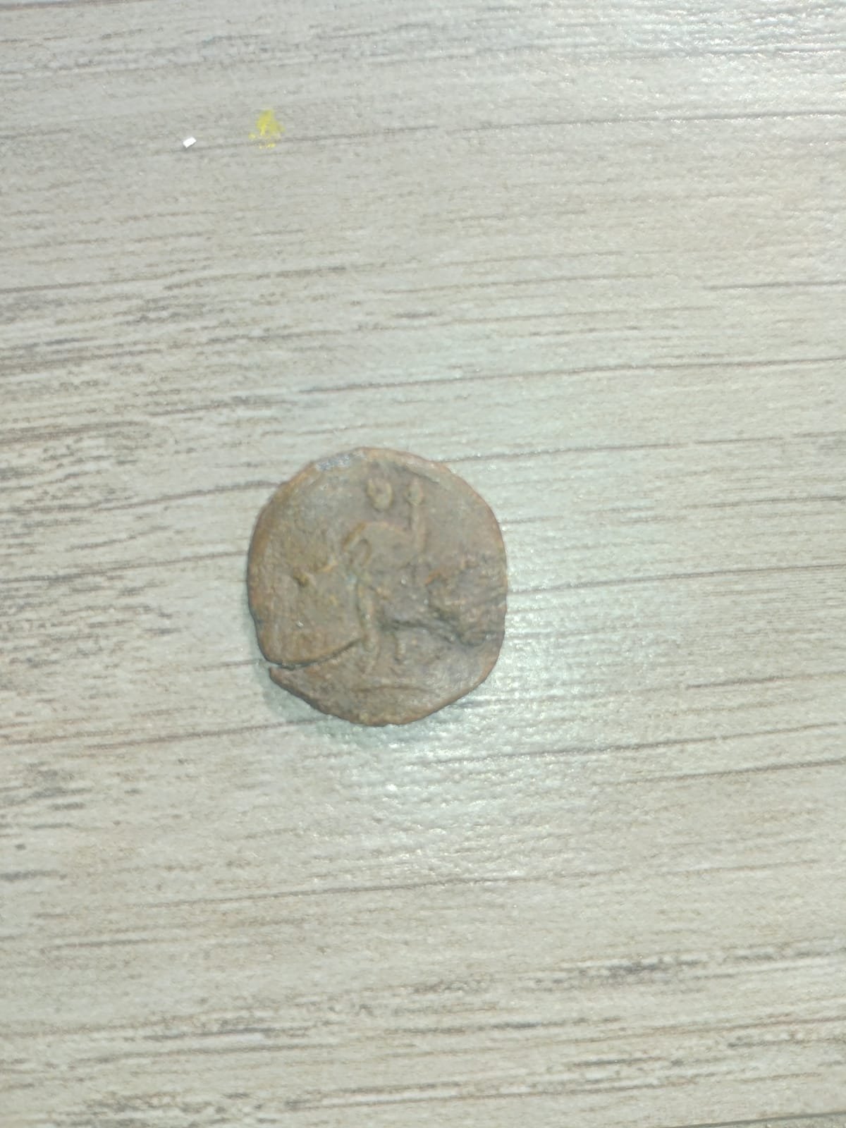 Ciao a tutti e grazie in anticipo per l'aiuto. Ho questa "moneta" dove su un lato si vede un uomo in piedi con qualcosa in mano "forse", comunque si vede molto bene dalla foto. Il retro invece, non vedo niente di chiaro. Ringrazio tutti in anticipo.