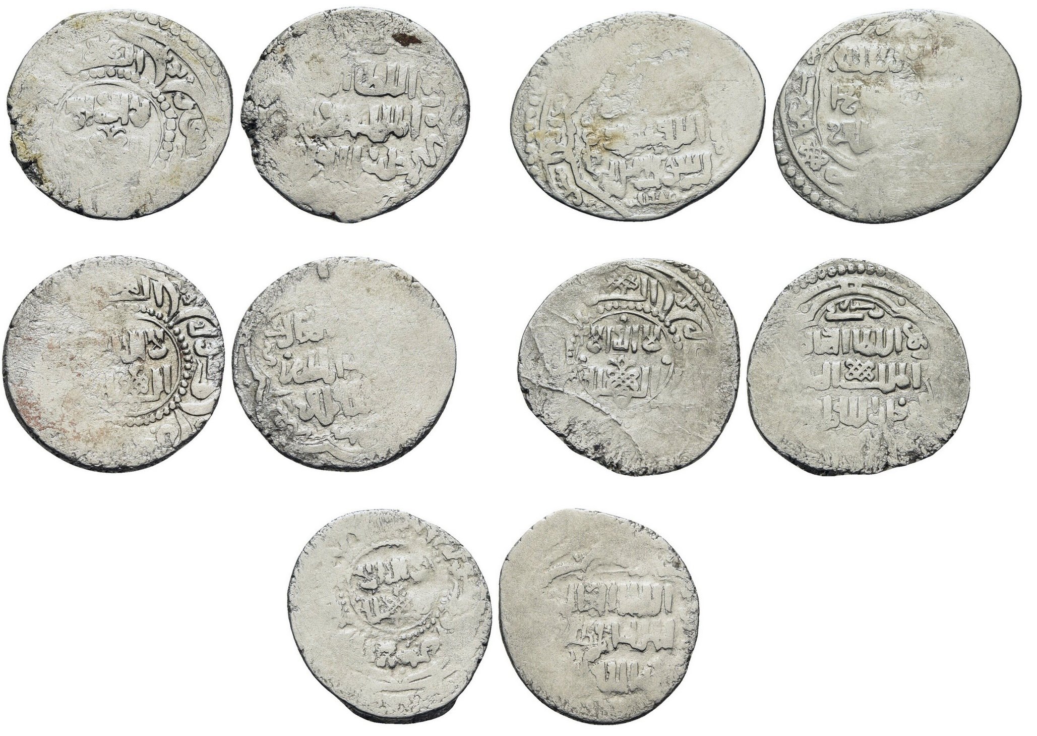sembrano mezzi dirham e dovrebbero essere tutti dello stesso califfato escluso quello in alto a destra.