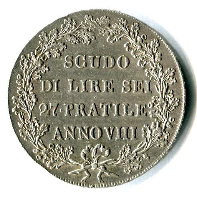La moneta pare BB+ con evidenti tracce di pulizia sui fondi del D/ (hairlines). In alto, sopra la R e la P di REPUBBLICA, appaiono sul bordo delle abrasioni/segnetti che, data la posizione "critica", sembrerebbero verosimilmente dovuti a clip metalliche da montatura. Forse una traccia è presente anche ad ore 3, tuttavia al R/ non sembra osservarsi nulla (in alto suppongo, dato che questa moneta presenta in genere gli assi alla tedesca cioè a 0°, ma occorre controllare anche l'intero bordo).