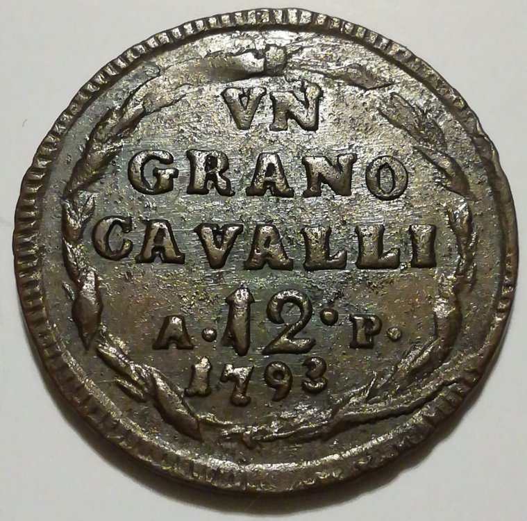 E per arricchire la discussione di Mariarosaria, condivido anche il mio "scarto di zecca" di un Grano 1793.
