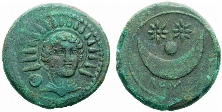 Mi chiedevo , in attesa di qualche vostro parere , se alcune monete "primitive" coniate di eta' repubblicana come la seconda in foto con al dritto il Sole e al rovescio il crescente di Luna con due stelle , possa essere identificabile come un prototipo senza immagine dell' Aeternitas , spostando in anticipo di ben oltre due secoli , forse anche tre , dalla moneta di Tiberio la prima rappresentazione dell' Eternita' . I simboli astronomici del Sole , Luna e Stelle in effetti potrebbero rappresentare l' immutabilita' del cielo come lo intendevano gli antichi e quindi l' Eternita' = Stabilita' , dello stesso .