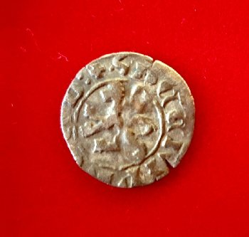 A me da più l'impressione di una moneta dei Lusignano; probabilmente un "piccolo grosso"; infatti è molto simile a quello fotografato nell'articolo che segue. Non credo però sia a nome dello stesso Signore .... certo è che c'è lo stemma dei Lusignano (Leone) e lo stemma del re di Gerusalemme (Croce potenziata)