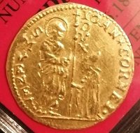 La seconda è uno zecchino d'oro di Venezia, a nome del Doge Giovanni Corner