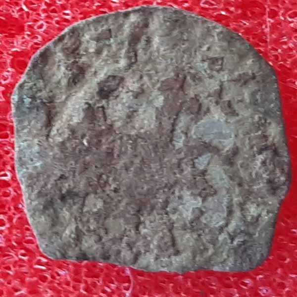 ma che probabilmente è di tutt'altra natura. Difatti , nonostante le caratteristiche di dimensioni, area di provenienza e simbologia (croce) siano comuni ad entrambe, il materiale di questo esemplare è certamente rame, inquadrandola a mio avviso in un epoca posteriore di qualche secolo.