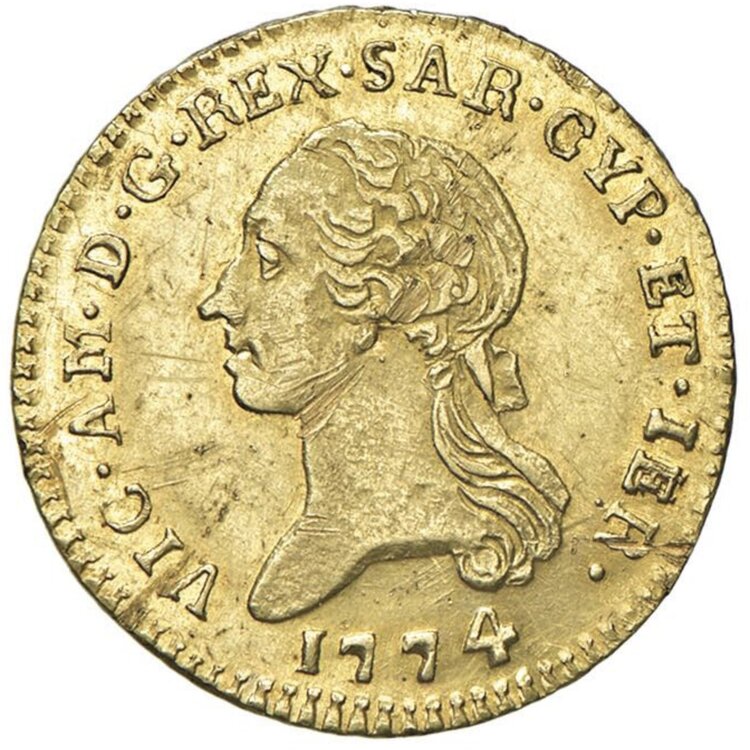 a) 280 - Savoia, Vittorio Amedeo III, Mezza Doppia 1786, Au mm 20 g 4,55 SPL
