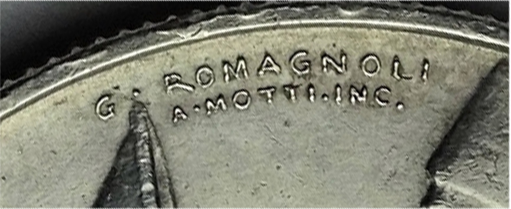 Concordo, anche a me sembra autentica. Mi sembra che si vedano anche i due pezzettini in incuso (opposto del rilievo :) , se vuoi controllare) nella firma nella L di Romagnoli e T di Motti. (edit... come aveva giustamente già notato @TIBERIVS)
