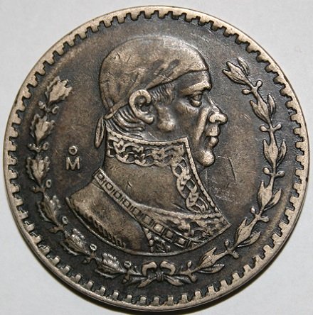 Al D/: è effigiato José Maria Teclo Morelos y Pavón (1765-1815): un sacerdote liberale che fu alla guida del movimento indipendentista del Messico dalla Spagna.