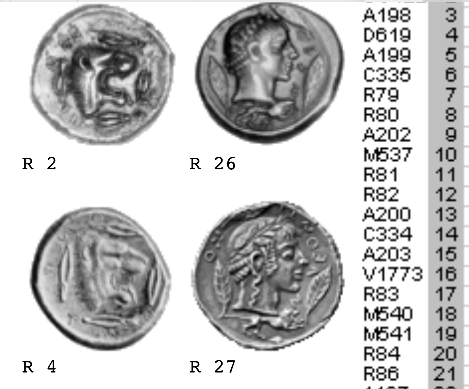 Le tipologie deI tetradracmi di Lentini sono 34 (almeno questi sono i dati che ho io) e si differenziano con disegni diversi sia al dritto che al rovescio. Quelle che sono piu comuni (tra i tetradracmi di Lentini sono quelle con la testa di Leone al dritto) nella tipologia invece con la testa di Apollo sempre al dritto le conio 17/26 sono piu rare ma piu comuni delle conio 18/27 che è molto piu rara se ne conoscono appena 5 pezzi (passati in aste pubbliche) contro i 13 pezzi conosciuti della conio 17/26. A prima vista possono sembrare uguali le due tipologie ma in realta sono ben diverse sia al dritto che al rovescio. Se non si capisce questa differenza si fa solo confusione come lo si è fatto nelle aste come la Nomos e la Lansky indicandola con riferimenti sbagliati che portano ad una tipologia diversa appunto la 17/26.  come la Randazzo numerata 88, ed anche come la SNG ANS 217 anche quella è una 17/26 ... quindi i riferimenti sono sbagliati.