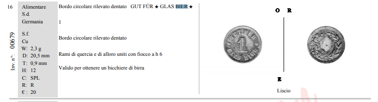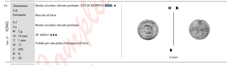 Gettone tedesco della birreria Kempff di Francoforte sul Meno